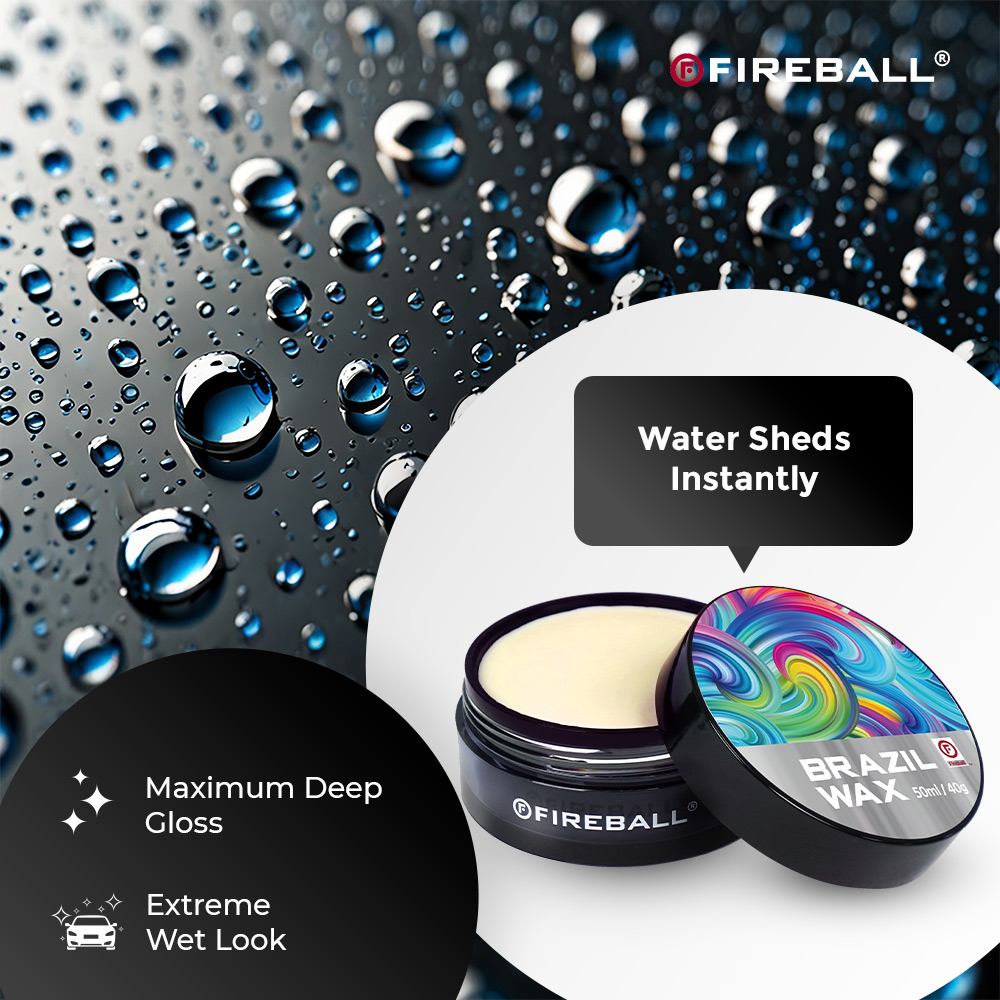 Fireball Brazil Wax is a premium T1 carnauba + SiO2 paste wax designed to enhance gloss, boost slickness, and improve water repellency with a rich wet-look finish. Safe for automotive paint, ceramic coatings, and paint protection film, it applies smoothly, hazes evenly, and buffs off easily without streaks. Ideal for regular maintenance or show-ready detailing, it helps reduce water spots and keeps surfaces looking cleaner for longer.
