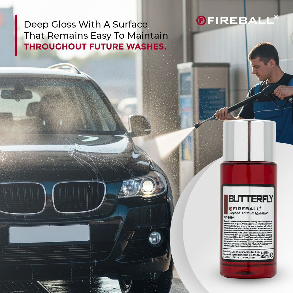 Fireball Butterfly is an executive SiO2 hard coat engineered for superior beading and long-lasting durability. It forms a tough, slick protective mantle that repels water, dirt, and road grime, helping your vehicle stay cleaner and easier to wash. The coating enhances gloss and color depth for a refined, showroom finish while improving resistance to everyday contaminants and harsh conditions. Ideal for detailers and enthusiasts who want strong, reliable paint protection.