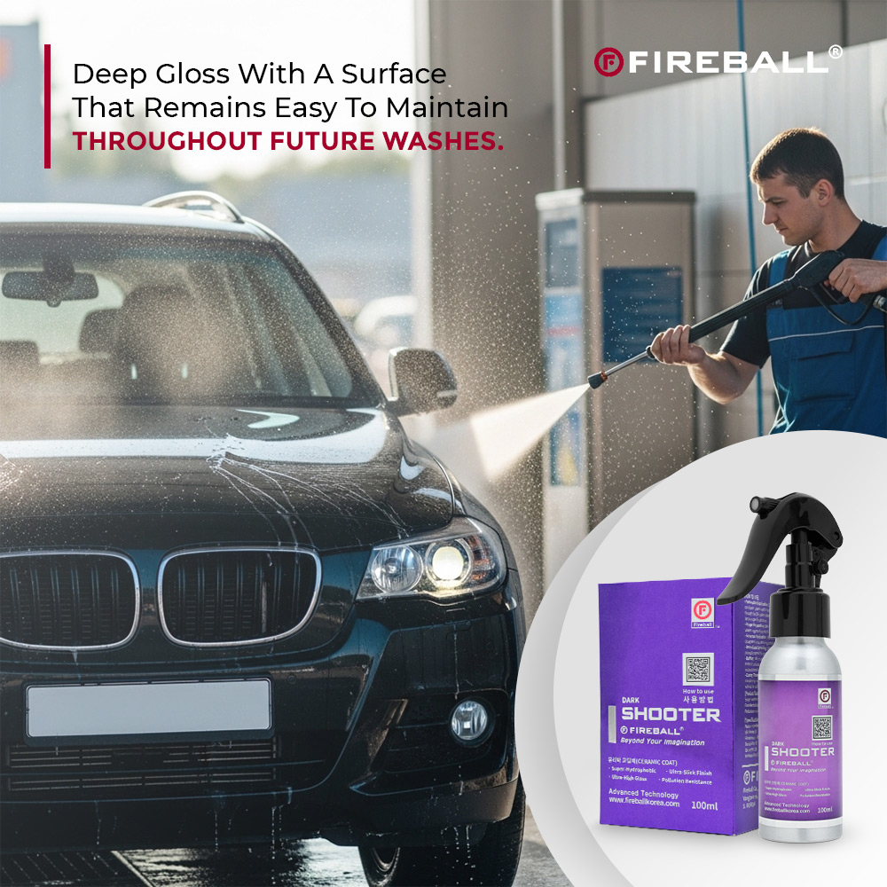 Fireball Dark Shooter delivers a mirror-like shine for dark paint with proprietary brightening SiO2 technology and up to 2 years durability. This easy spray-on coating adds a slick, glossy layer that boosts water beading and helps repel dirt, grime, and road film. It enhances color depth and clarity, leaving a smooth, refined finish that’s easier to maintain. Ideal as a quick ceramic top-up after washing or a standalone spray coat for darker vehicles.