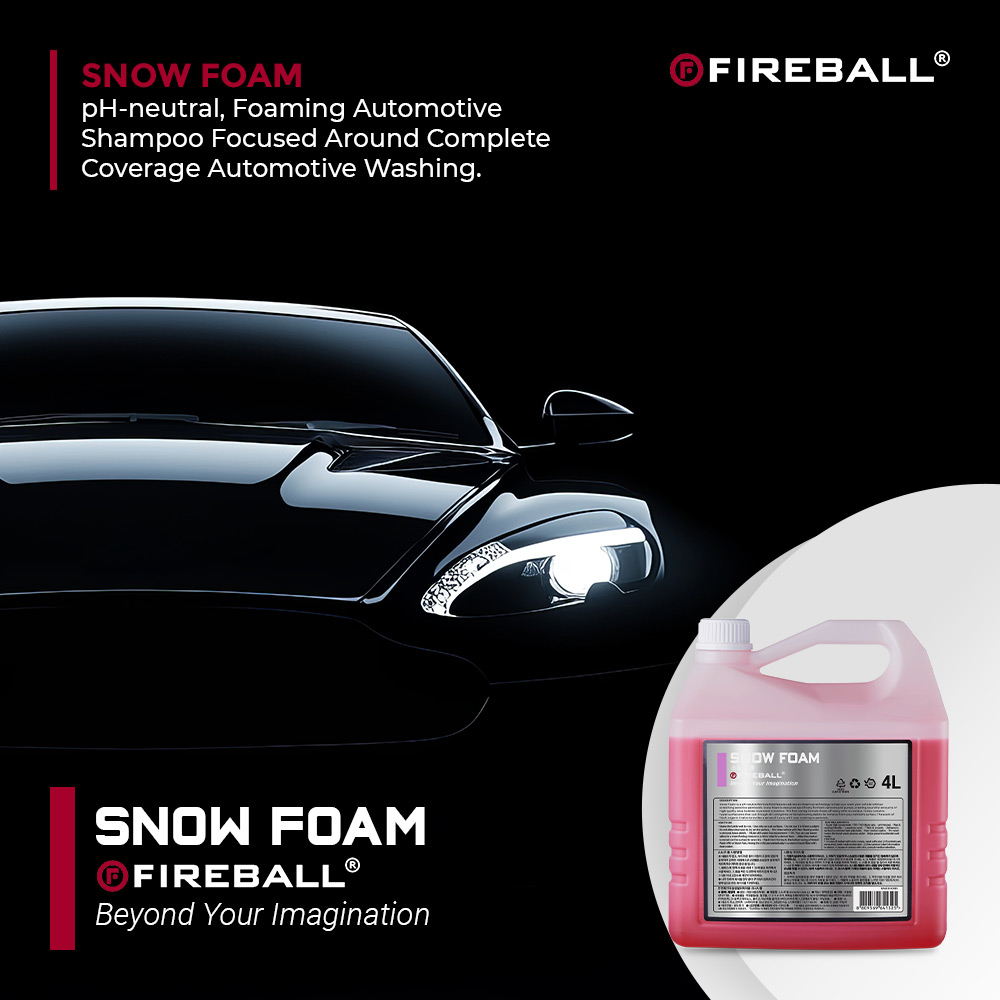 Fireball Snow Foam is a powerful pre-wash car cleaning solution designed to produce thick, clinging foam that helps loosen dirt, mud, and road grime before contact washing. The rich foam layer gently lifts contaminants from the surface, helping reduce the risk of scratches and swirl marks. Its pH-neutral, paint-safe formula makes it suitable for regular use on all vehicle exteriors, including paint, clear coat, wax, and sealants. Ideal for use with foam cannons or foam guns, Fireball Snow Foam leaves your vehicle clean, refreshed, and ready for a safe hand wash.