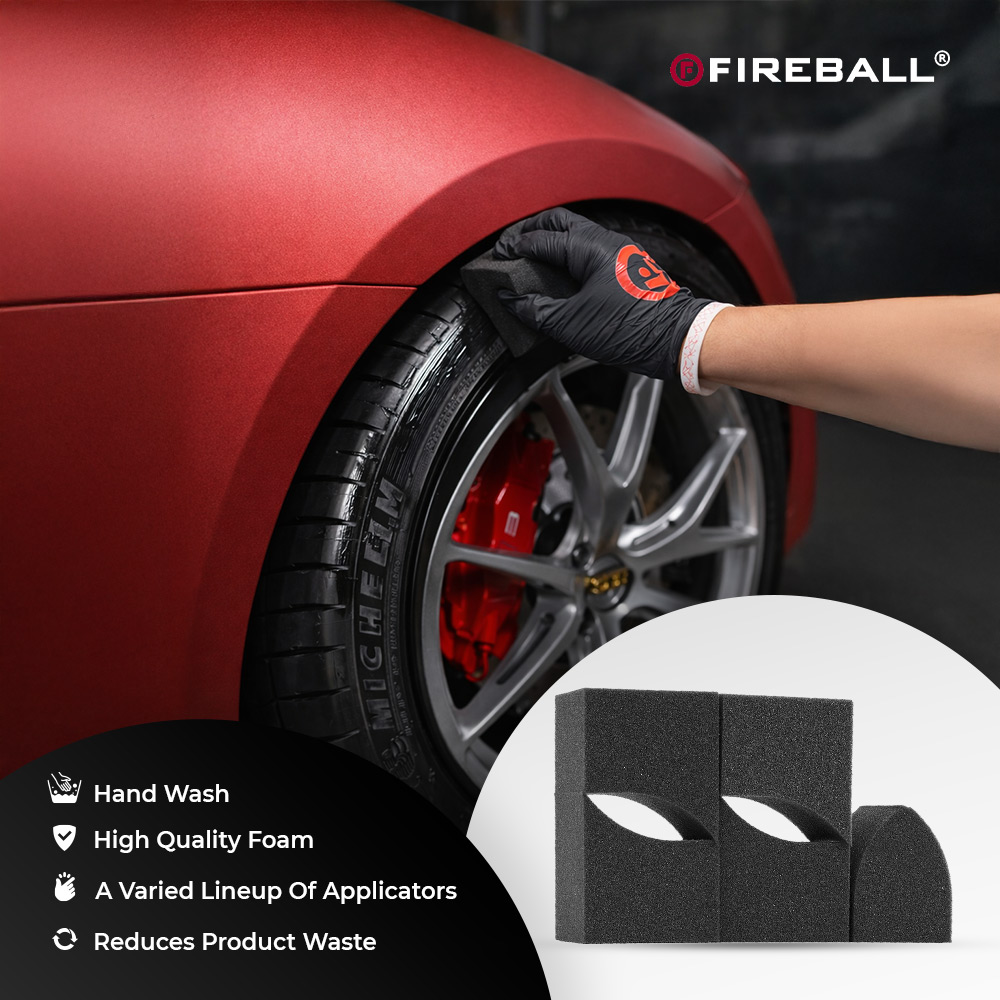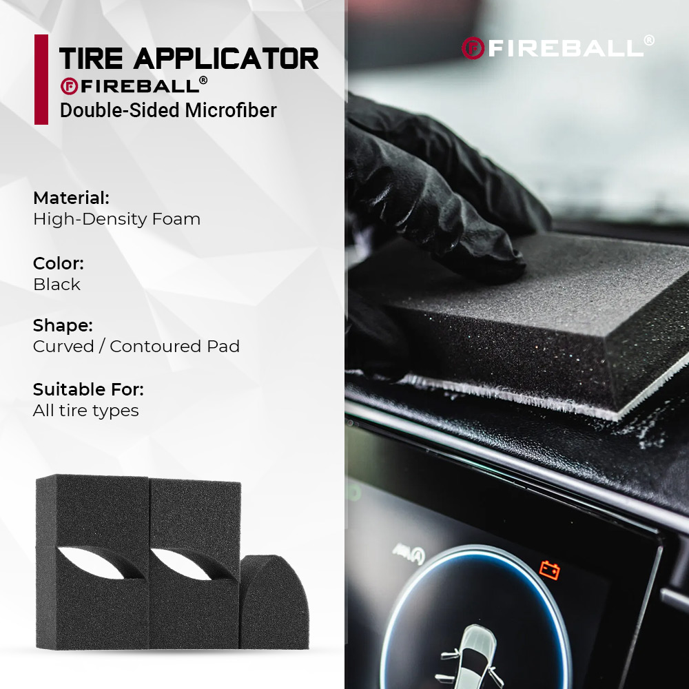 The Fireball Tire Applicator Pad is designed to make tire dressing quick, clean, and effortless. Crafted from high-quality, dense foam, this pad ensures smooth and even application of tire dressings without sling, streaks, or mess. Its curved ergonomic design fits perfectly along tire sidewalls, allowing precise control and uniform coverage. The foam structure helps reduce product waste while delivering a deep, consistent shine. Suitable for both professional detailers and car care enthusiasts, this applicator pad is reusable, washable, and built for long-lasting performance.